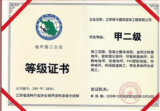 江蘇麗卡建筑裝飾工程有限公司是一家專業(yè)化、多元化公司;公司致力于工業(yè)地坪材料工程和施工場地的開發(fā)設(shè)計、銷售施工及保養(yǎng)維護(hù)。